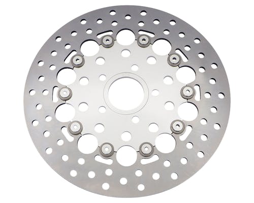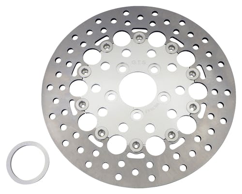 GTSのフローティングディスクローターです。 フローティングローターはリジット固定に比べ、 ロータに生じる車軸方向の応力が軽減されるため、熱変形が抑えられる他、 ハブやホイールに伝わる熱を軽減させるなど、メリットが豊富です。 レーザーカット加工で精密に仕上げられ、 軽量化のためインナーとコネクトピンはアルミが使われています。 |