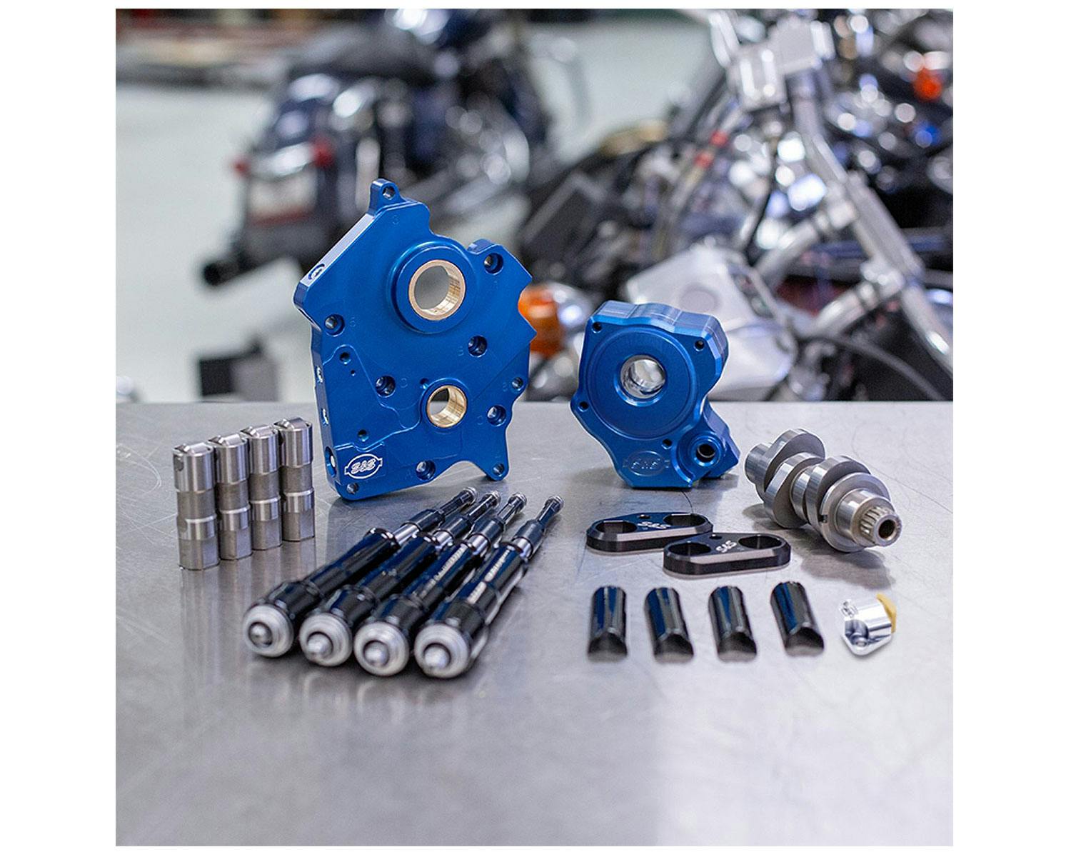 S&S製のカムチェストアップグレードキットです。 チェーンドライブユニットに対応のハイカムシャフトと、 同社が誇る鍛造ビレットのカムプレートとオイルポンプに加え、 プレミアムパフォーマンスタペットやアジャスタブルプッシュロッド。 その他にもビレットタペットストッパーなど、 当キットにピッタリなS&Sの高精度チューニングパーツが オールインワンになったセットでリリース。 ハイカムにより吸気効率アップで出力強化も望め、 オイリングシステムの変更により 油圧の安定強化も全てチューンされる内容となっております。 商品詳細ページ |