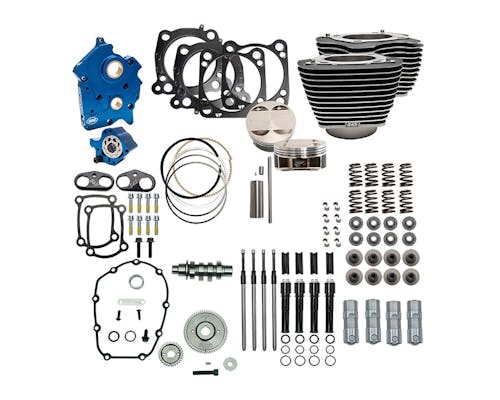 S&Sパフォーマンスより、M8ストックエンジンを 124キュービックインチへとパワーアップさせるキットが、 この度満を持して登場です! シリンダーは高精度な40000psi耐強度を誇る鋳鉄ライナーで作られ、 シリンダースリーブの素材にダクタイル鋳鉄を使用する事で、 従来のシリンダーと比べ強度・放熱性がアップしております。 付属のピストンは軽量&高強度な鍛造成形。 スカートの形状を見直すことで、 メカニカルノイズを抑え、エンジンの寿命を延ばします。 専用設計の為、ボーリング等の加工は必要とせず、 ストックと外観イメージを変えることなくインストールが可能です。 更にはチェーンカム&カムプレート、高性能オイルポンプも含まれ、 排気量UPに伴うオイルの供給不足の心配も無くなり、 内側からしっかりとパワーアップが可能です! さらなるホースパワーを求める車両にピッタリなキットです! |