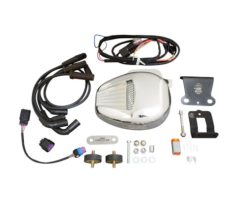 空冷のハーレーは走行をしていないとエンジンが風で冷やされず、 渋滞等に巻き込まれて停止時間が長くなるとオーバーヒートを起こすリスクがありますが、 ホーンマウント部に位置するシリンダークーラーがサーモスタット機能でエンジンの温度を感知し、 強力なモーターによってファンブレードが回転する事で風を直接エンジンに当てて油温上昇を防ぐ、 日本の道路事情にはもってこいのアイテムです。 もちろんサーモスタットはスイッチでON/OFFが切り替えられると共に、 エンジン温度が一定以上になって初めてファンが動作する仕様ですので、 オーバークールの心配も無く一年中装着したままで問題無いですし、 内部にはホーンが備わっており移設の心配もありません。 参考記事 取扱説明書 |
