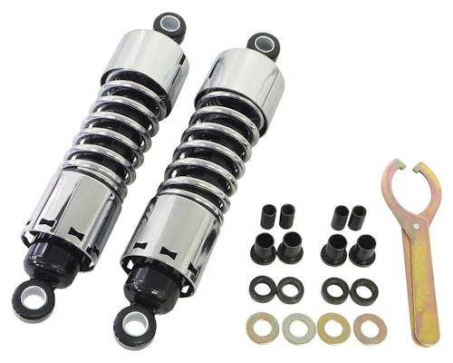 プリロード調整用のアジャストツールも付属していますので 乗り方に合わせて調整して下さい。 プリロードは5段階調整です。 プリロードを調整する際には浸透性潤滑剤(ラスペネ等)を使用してから回すと、 スムーズに回ります。 ※右回しでプリロードが掛かり、左回しで緩みます。 ちなみに2000年式以降のFXDXやFXDXTでも、ショックマウントスタッドを変更すれば 適合可能になります(クロームスタッドとユニクロスタッドがあります) 取り付け参考記事はネオガレージブログをご確認下さい。 |