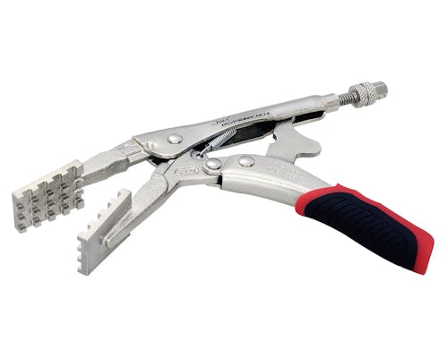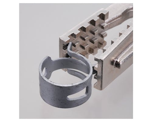 ワッフル形状の口が様々な形のホースバンドに対応。