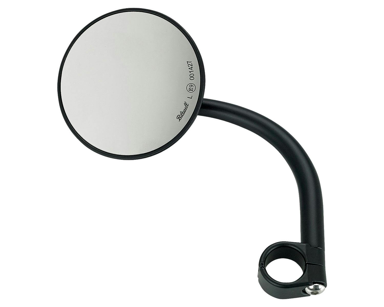 ビルトウェルのオリジナルミラーです。 こちらのEマーク付きのミラーはワイドアングルレンズとなっており、 広角の役割を持たせた事でCE認証を取得しております。 クランプ部分は2ピースのヒンジ構造ですので、 1ピースのようにスッキリとした見た目を得られます。 もちろん2ピース構造なので脱着も簡単です。 小振りなミラーでオールドスクールからニュースクールまでどんなスタイルにも似合います! |