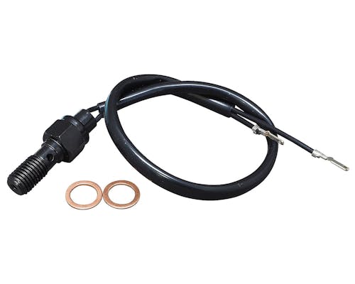 GTSのブレーキスイッチ付きのバンジョーボルトです。 主にシングルディスクのマスターシリンダーに使用します。 ハウジングを交換して、レバーにブレーキスイッチが付かなくなった場合、 このバンジョーを使用することで油圧式のスイッチに換装できます。 |