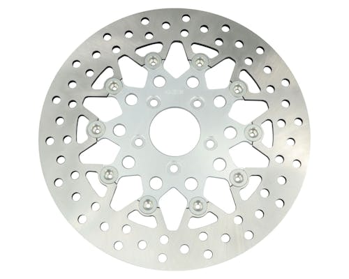 GTSのフローティングディスクローターです。 フローティングローターはリジット固定に比べ、 ロータに生じる車軸方向の応力が軽減されるため、熱変形が抑えられる他、 ハブやホイールに伝わる熱を軽減させるなど、メリットが豊富です。 レーザーカット加工で精密に仕上げられ、 軽量化のためインナーとコネクトピンはアルミが使われています。 |