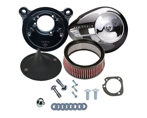 高性能吸気システムを搭載した、S&SのNEWラインナップ、 ステルスエアークリーナーキットです。 ドレスアップもさることながら、吸気効率の向上によりパワーアップも見込めます! |