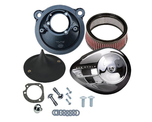 高性能吸気システムを搭載した、S&SのNEWラインナップ、 ステルスエアークリーナーキットです。 ドレスアップもさることながら、吸気効率の向上によりパワーアップも見込めます! |