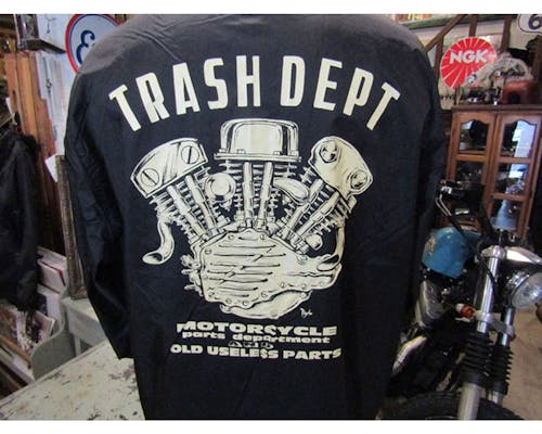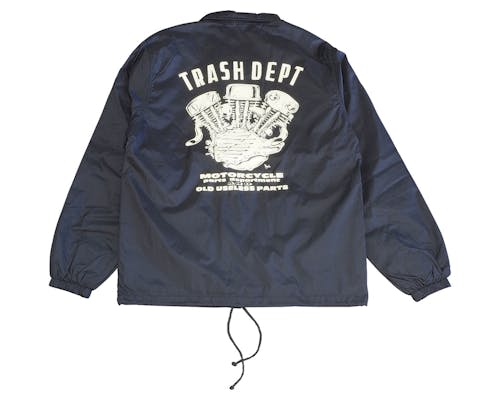 TRASH DEPT オリジナルコーチジャケット。 バックプリントにエンジンロゴがあしらわれています。 |