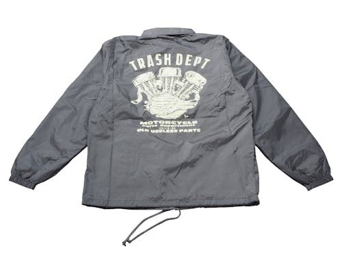 TRASH DEPT オリジナルコーチジャケット。 バックプリントにエンジンロゴがあしらわれています。 |