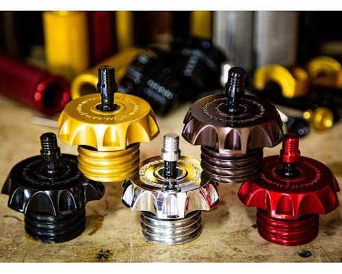 USカリフォルニア・ハリウッドのPOWERPLANT MOTORCYCLES。 珠玉のビンテージチョッパー&ボバーから、パフォーマンス重視のハイスピードクルーザーまでの作品が有名であり、日本国内最大のカスタムショーにおいてもゲストビルダーとして来日した際には、P16と名がついた漆黒のクラブスタイルFXRもとてもCoolで同店らしい見事な作品でした。 そのPOWERPLANTからリリースされているMXガスキャップはその名の通り、モトクロスゆずりのベントホースが立っておりレーシーな雰囲気が漂います。 ガスキャップまでもT6アルミニウムで削りだされているなんて、贅沢なスペックです! Made in U.S.A. |