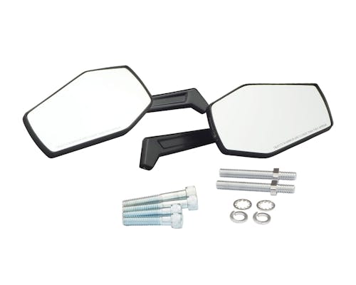 Left Mirror×1 Right Mirror×1 5-16-18X 1.5” Socket Head Cap Screws×2 5-16-18 X 2” Socket Head Cap Screws×2 Double Ended Threaded Studs×2 5/16 Split Lock Washers×2 5/16 Internal Tooth Lock Washers×2 |