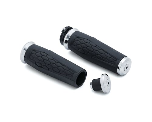クリアキンがリリースするヘックスシリーズのグリップです。 人間工学に基づいたデザインと相まって弾力に優れるEPDMラバーが、 振動低減と自然に握れる快適さを提供します。 ケーブル巻き取り部が備わっておりインナースロットルは必要ありませんし、 エンドキャップは着脱式ですのでバーエンドミラーにも対応します。 メ |