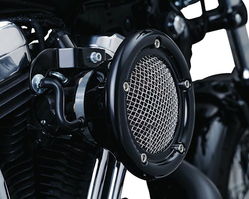クリアキン製のベロシティスタック型エアクリーナーです。 ベロシティスタックと聞くとスポーティーなイメージが持たれますが、 ショーバイクにも似合う洗練されたデザインとなっております。 ウォッシャブルタイプのK&N製フィルター付属で繰り返し利用可能です。 |