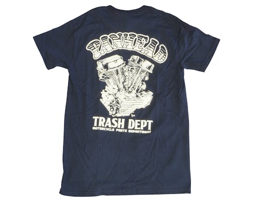 パンヘッドエンジンがバックプリントされたTRASHDEPTオリジナルTシャツ。 ボディーは USA TシャツのGILDAN 6オンスです。 |