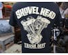 ショベルヘッドエンジンがバックプリントされたTRASHDEPTオリジナルTシャツ。 ボディーは USA TシャツのGILDAN 6オンスです。 |