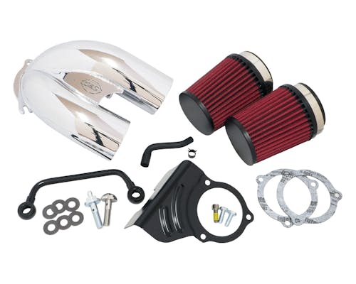特徴的な2個のフィルターから取り込んだ空気を集約させる事で、 ノーマルと比較し2倍以上の吸気機構を搭載したエアクリーナーキットです。 ボルトオンでパフォーマンスを向上させると共に、 赤いエレメントがアイコンとなってルックスも兼ねたスタイルに仕上がり、 同社のエキゾーストやビッグボアキットとの併用で更なるパワーUPが期待出来ます。 |