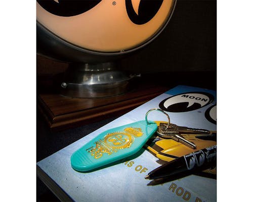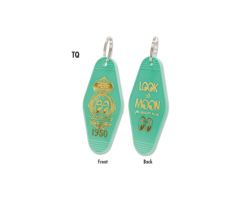 MOON Equippedブランドのクラシカルなキータグです。 1960年代頃にUSAのホテルやモーテルなどで使用されていた 当時のルームキータグをイメージしてデザイン! 限界までディテールにこだわり、まるで当時MOON Equippedのホテルが 実在していたかのようなデザインです。 ルーム ナンバーの変わりに、1950年MOONEYES USAが創設された年が入っています。 バックにはLOOK to MOON for QUALITY PLUSのレタリングが入っており、 デザインはゴールドの箔押しでリッチな仕上がりになっています。 愛車や家のキーホルダーとしてだけではなく、置いておくだけでも USAな雰囲気を出してくれるアイテムです。 |