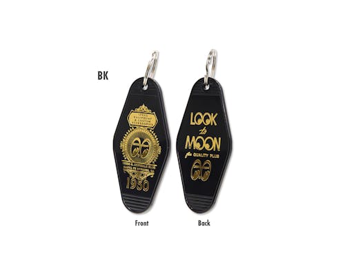 MOON Equippedブランドのクラシカルなキータグです。 1960年代頃にUSAのホテルやモーテルなどで使用されていた 当時のルームキータグをイメージしてデザイン! 限界までディテールにこだわり、まるで当時MOON Equippedのホテルが 実在していたかのようなデザインです。 ルーム ナンバーの変わりに、1950年MOONEYES USAが創設された年が入っています。 バックにはLOOK to MOON for QUALITY PLUSのレタリングが入っており、 デザインはゴールドの箔押しでリッチな仕上がりになっています。 愛車や家のキーホルダーとしてだけではなく、置いておくだけでも USAな雰囲気を出してくれるアイテムです。 |