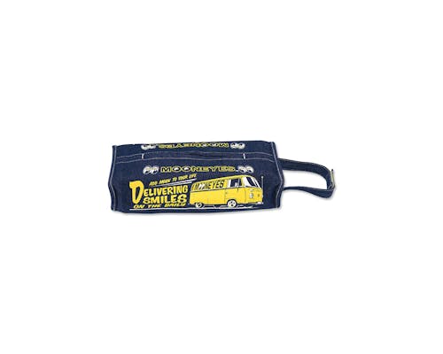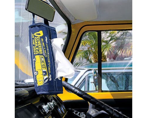 市販のティッシュ BOX にかぶせて使う デニム地のティッシュカバーです。 使い方は簡単、ティッシュ BOX にかぶせてベルクロを止めるだけ! Yellow Color の VW Type-II と "ADD MOON TO YOUR LIFE"、 "DELIVERING SMILES ON THE DAILY"のメッセージをプリントしました。 車内に置かれた味気ないティッシュもこれを被せれば解決!! ループ部分はマジックテープになっているので、車のヘッドレストにつけることもできます。 ドアノブにかけたり、フックなどを利用して壁に掛けて使っても OK! 側面は、両面同プリントになります。 |
