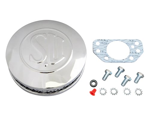 American Prime Manufacturingより、昔から伝統的なデザインを変わらずして復刻させたアイテム! アメリカンV-twinの真ん中を飾るエアクリーナーと言えば・・往年の「SUエアクリーナー」がベストマッチでしょう。 さらにこのたびAPMからラインナップされたSUエアクリーナーシリーズでは、従来のスタンダードタイプのクロームとブラックに、スリムな薄型タイプのクロームとブラックの合計4種類からお好みで選べるようになりました。 機能面でも新設計として裏の赤いキャップを外してこちらのホースニップルを用いれば、ヘッドから排出されるブローバイガスをクリーナー内にしっかりとした接続で戻す事が出来る様になっております。 愛車の外観をノスタルジックにまとめるには、SUエアクリーナーというチョイスは外せません!CVキャブレターやEFIモデル(TBW除く)の方でもこちらの変換アダプターを用いれば装着できますので、適合もグッと広くなりました。 ハードにツーリングされるオーナーのために、レインカバーのご用意もあります! 最新のマシニングビレットには出ない味があるパーツをぜひ。 |