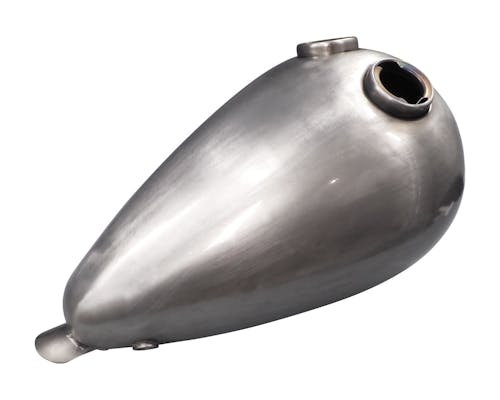 チョッパーガスタンクです。ガスキャップはカムタイプです。 左右にガスキャップ取り付け口があります(左側はダミー)。 その名の通り、チョッパーの定番ですね。 ちなみにガスキャップは左右どちらとも右用が対応します。 適合するキャップやガスコック、プラグボルトは関連商品をご覧下さい。 ガスタンク取り付けイメージ一覧 ![]() |