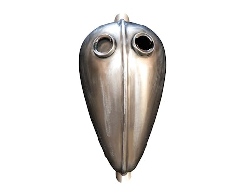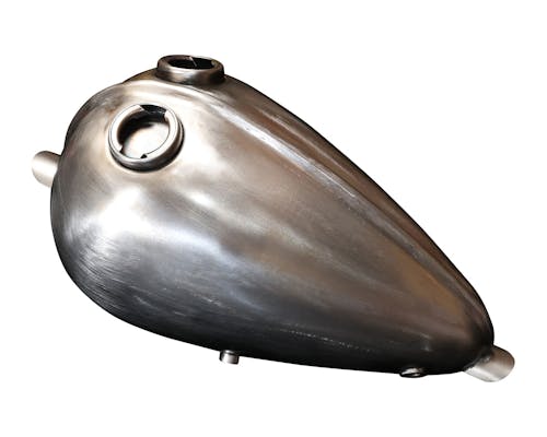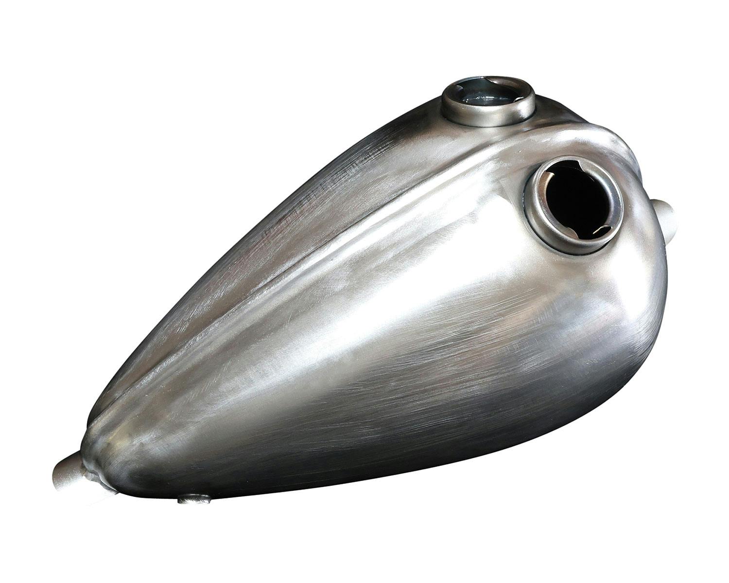 チョッパーガスタンクです。ガスキャップはカムタイプです。 左右にガスキャップ取り付け口があります(左側はダミー)。 その名の通り、チョッパーの定番ですね。 ちなみにガスキャップは左右どちらとも右用が対応します。 適合するキャップやガスコック、プラグボルトは関連商品をご覧下さい。 ガスタンク取り付けイメージ一覧 ![]() |