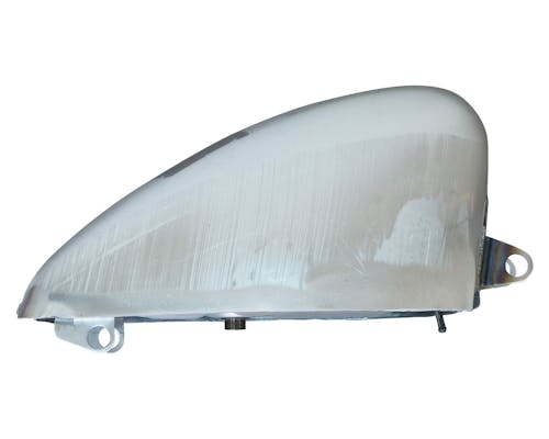 タンク裏に設けられておりますオーバーフローパイプが梱包状態や真鍮という素材の兼ね合いにより、 曲がってしまっている場合がありますが、通常は使用しない箇所となっていると共に、 穴は塞がっておりますので仕様に問題はございません。 もしもオーバーフロー機能を設ける際には、 適宜プライヤー等でパイプを修復し穴開け加工をされた上でご利用ください。 ※タンク裏に設けられておりますオーバーフローパイプは、 出荷時状態では穴が開けられていない為、 オーバーフロー機能を設ける際にはドリル等で穴あけ加工を行う必要がございます。 ※当商品は加工ベースの為、スチール素材素地の状態です。 製品特性上錆が発生してある場合がございますので予めご了承下さい。 ガスキャップはスクリュータイプ右のみ適合です。 塗装の前にフィッティング、ガス漏れの確認を行ってください。 内容量表記(ガロン)は目安となっております。 車体にマウント後、実際に使える容量は表記より低くなる場合がございます。 ※当商品を購入及び施工前に『ガソリンタンク取り扱い注意事項』を必ず御確認下さい。 注意事項を確認せず塗装や加工等を行った後に発覚した製品の不具合は 一切お受け付けを致しませんので予めご了承下さい。 |