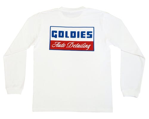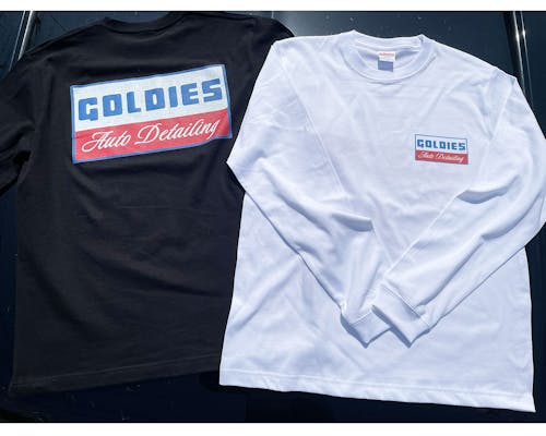 GOLD RUSHスプレーでお馴染みのGoldiesより、ついにアパレルがリリース! トリコロールカラーのポップで可愛らしいブランドロゴデザインが特徴的で、 首元にはGoldiesのタグがあしらわれた特別な一着となっております。 また、ベースはUS規格ではなく日本規格を採用しておりますので、 ご自身の体格にあったものを選びやすくなっております。 『Printed by -Calink- KUSTOMSTYLE SO-CAL』 |