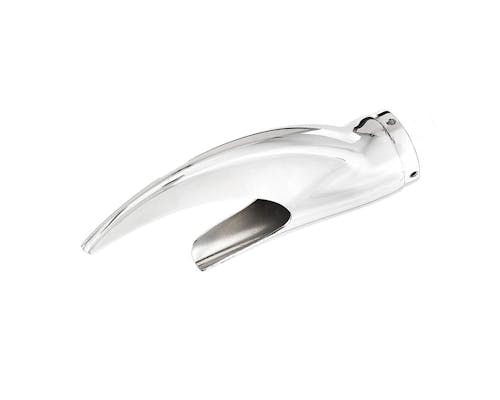 リーパー(死神の鎌)を連想させるデザインのマフラーエンドチップです。 左右2本出しマフラーのチョロスタイルにもってこいのデザインです。 |