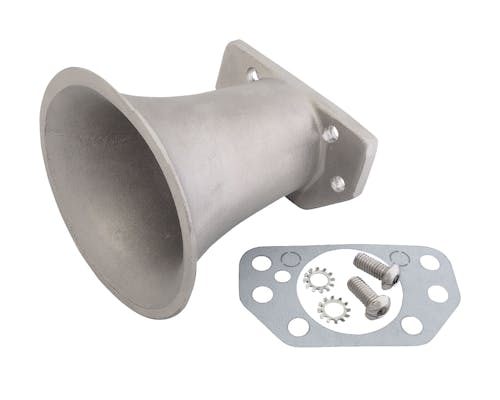 往年のSUキャブレター用ファンネルがAPMによって復刻されました。 大きくせり出す姿はドラッグレースのマシンさながらの風貌を演出します。 外気を吸入する際の抵抗がありませんので、 ハイパワー化に繋がるというのは利点ですが、 塵の侵入を予防する為にもネット等の併用を推奨します。 通常のエアクリーナーから交換する場合には燃調のセッティングが必要となります。 |