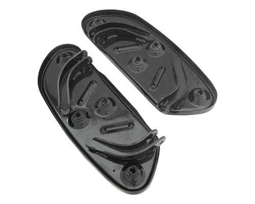 ハイテクカスタムに似合うスウェプトウィングタイプとも呼ばれるフロアボードです。 ボードの裏側に備わるダンパーによって振動を吸収する工夫が凝らされ、 より快適なライディングに一役買っております。 新調やリプレイスとしてもお役立てください。 |