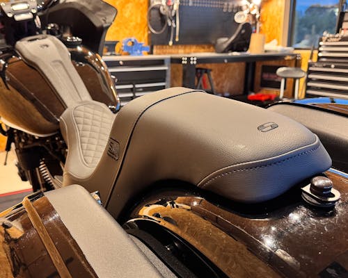 Speed Merchantとシートメーカーのリーダー的存在であるsaddlemenのコラボ製品です。 高級感溢れるダイヤモンドステッチデザインシートの左右には「SM」、 タンデムシート後部には「S」の刺繍が施されています。 saddlemenの「ウルトラフォーム」と呼ばれる独自の成型方法は フォーム本体への水の浸入を防ぎ、耐久性と快適性の向上を実現しました。 そして、標準装備されたゲルコアが更なる快適性を生み出します。 フレームの輪郭に沿った形状となっており、 スリムかつスタイリッシュなルックスに仕上がっています。 |