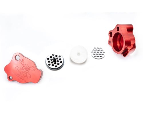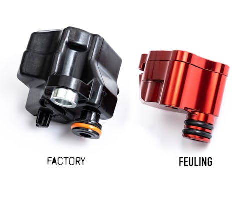 フューリングよりM8用シリンダーヘッドブリーザーセットが登場です。 純正の樹脂製ブリーザーASSYは熱に弱く、 過度な熱による変形が進む事で本体が破損し ブリーザー機能を正しく保つことが出来ないとされています。 また、純正は非分解構造となっており、定期的な交換が求められます。 それらの問題を全て解決したのがこのヘッドブリーザーセットです。 6061アルミ(T6)を使用し強度の大幅アップを図りつつ、 ブリーザーシステムはTCまで採用されていた仕様を再現。 メンテナンス性とブリーザー機能の向上がしっかりと考えられております。 また、シリンダー挿入部分をダブルシール化する事で、 オイル・ブローバイガス漏れのリスクなども回避。 3~4ozのオイル流量増加も見込める、まさに完璧なアップグレード品です!! |