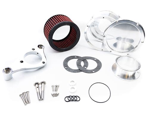Feuling BAエアクリーナーは、内部にファンネル(ベロシティスタック)を設け、 インテークを長くし吸気流速を高めることで、 馬力・トルクの大幅な向上を見込むことが可能です。 ブローバイの機構が一体となったバックプレートを使用し、 別途フィルター類を設けないことで、一体型だからこそのスッキリとした見た目を実現。 また、再利用が可能な湿式エレメントを採用し、 メンテナンス性と機能性を併せもったキットとなっています。 その中でも"Race Series"は、元々バガーレースのエンジン用に設計されたもの。 通常のBAエアクリーナーと比べエレメントが約1インチほど厚く、30%もSIZE UPしています。 バガーレースにも参戦しているフューリングが送り出す、 レースパフォーマンスのハイフローエアクリーナーがついに上陸!! "Run the Best or Choke with the Rest" |