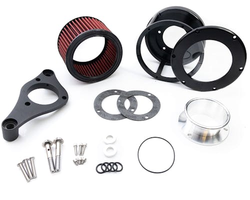 Feuling BAエアクリーナーは、内部にファンネル(ベロシティスタック)を設け、 インテークを長くし吸気流速を高めることで、 馬力・トルクの大幅な向上を見込むことが可能です。 ブローバイの機構が一体となったバックプレートを使用し、 別途フィルター類を設けないことで、一体型だからこそのスッキリとした見た目を実現。 また、再利用が可能な湿式エレメントを採用し、 メンテナンス性と機能性を併せもったキットとなっています。 その中でも"Race Series"は、元々バガーレースのエンジン用に設計されたもの。 通常のBAエアクリーナーと比べエレメントが約1インチほど厚く、30%もSIZE UPしています。 バガーレースにも参戦しているフューリングが送り出す、 レースパフォーマンスのハイフローエアクリーナーがついに上陸!! "Run the Best or Choke with the Rest" |