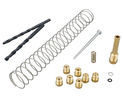 ツインパワーのCVキャブリキャブレーションキットです。 少ないパーツですがスロットルのレスポンスなどを修正し、セッティングを見直すことが可能です。 長年連れ添ったキャブレターの分解清掃時に合わせてもご利用ください。 |