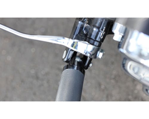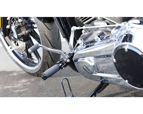 削り出しのステップ本体に特殊製法による継ぎ目の無いローレット状のラバーを巻く事で 足元の滑りを軽減させた、デザインと実用性を兼ね備えたステップです。 |