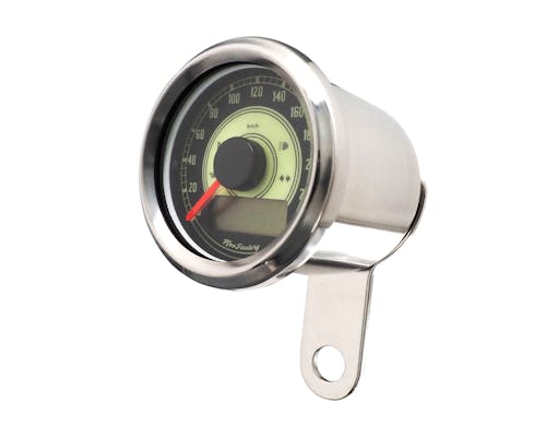 48mmの小さなタイプのメーターです。 発光時には幻想的な白い光で、見た目もばっちり。 トリップメーターも付いているので、燃費管理も可能です。 しかも、各種インジケーター付きなので車両の状態を簡単に確認できます。 更にパルス設定を調整可能なので、ほぼ全ての電子制御メーターの車輌に適合します! 「ギヤ比は合ってるのにメーターの表示がずれる」とお悩みの方や タイヤサイズ、スプロケサイズを変更しようとしている方などには最適ですね。 タンクを替えたらメーター移設が必要になった!とか、 メーターが大きすぎてカッコ悪い!という方にもお勧めです。 キャリブレーションの設定、配線色については、 インジケーター付きスピードメーター説明書をご参考にしてください。 |