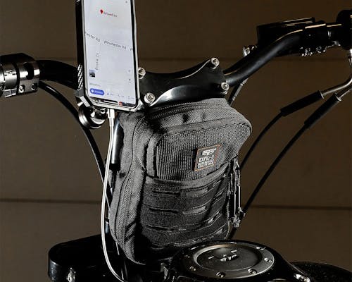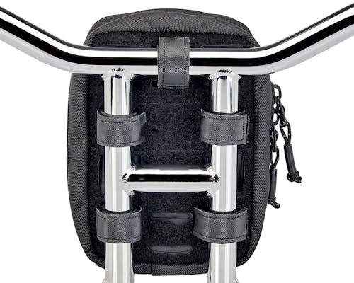 ビルトウェルのオリジナルユーティリティーバッグです。 350ml缶が最大3本納まる容量は、お財布やスマホ、デジカメ等を入れておくのに最適! 中の仕切りは取り外しが可能であり、 本体背面のマジックテープは、 同社製タイソンハンドル(ライザーバー)にベストな位置で取り付けできるように 設計されていて、ライディング中のアクセスもとても便利です! |