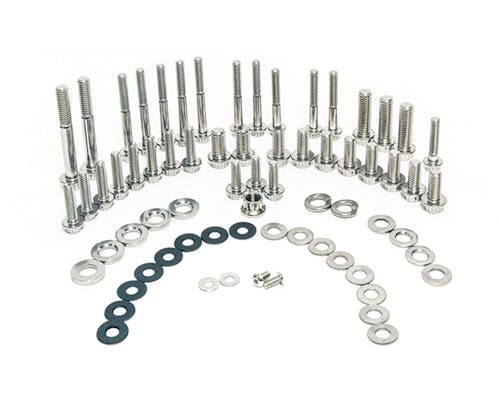 (1)Rocker Cover:1/4-20x1.00" 12pt(1/4" large OD washer&foamet gasket) ×8 (2)Lifter Block:5/16-18x0.75" (use 5/16" washers) ×4 (3)Front Engine Mount:3/8-16x1.250"(use 3/8" washer&lock washer) ×1 (4)Front Engine Mount Nut:3/8-24 Nut(use 3/8" washer&lock washer) ×1 (5)Case Bolts:5/16-18x2.50" ×2 (6)Case Bolts:5/16-18x0.750" (98-03 Models) ×4 (7)Case Bolts:5/16-18x0.750" (91-97 Models) ×3 (8)Right Side:Engine Cover 1/4-20x1.750" ×3 (9)Right Side:Engine Cover 1/4-20x1.250" ×1 (10)Right Side:Engine Cover 1/4-20x2.250" ×5 (11)Right Side:Engine Cover 1/4-20x2.00" ×2 (12)Center Engine/Choke Mount:3/8-16x1.250" (use 3/8" HD washers) ×2 (13)Timing Cover:8-32x5/8"(cover plate requires 8-32" tap) ×2 (14)1/4" Large OD Washers ×8 (15)1/4" Foamet Gasket ×8 (16)3/8" HD Washers ×5 (17)5/16" Washers ×4 (18)3/8" Lock Washers ×2 |