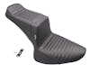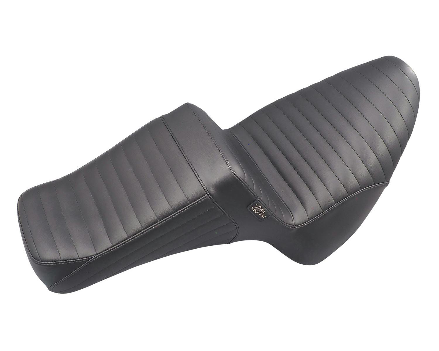 ラペラより新たなデザインシートが登場。その名も『テールウィップ』!! 人気の『キックフリップ』シリーズの派生デザインで、 ライダーとパッセンジャーにとって最も快適なライドとなる事を目指し作られました。 『キックフリップ』の特徴とも言えるライダーのホールド感はそのままに。 タンデム部分はフラットに仕上げ、 尚且つダックテールのような尻上がりの斬新なデザインがパッセンジャーをホールド。 乗り心地抜群のツーリング向けシートとなっております。 また、『テールウィップ』ならではの他に類を見ない唯一無二のデザインは、 車両のカスタム性を格段に向上させます。 MADE IN USA |