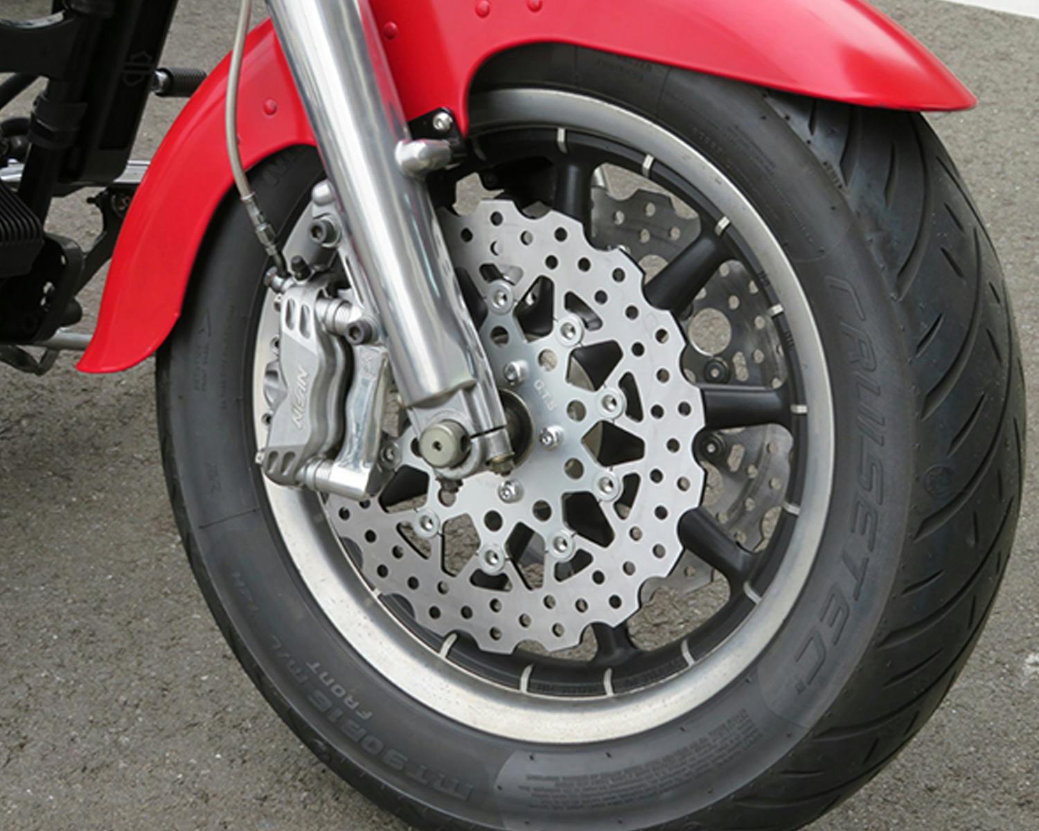 以下のフロント11.8inローターを純正採用するモデルに適合。 2006年~2017年式のダイナ 2008年式以降のツーリング 2015年式以降のソフテイル 2014年式以降のXL ※ProdigyまたはEnforcerのホイールを装着した2014年式以降のツーリングモデル及び、 ローライダーSなど一部Switchbladeタイプのホイール装着モデルにはご利用いただけません。 |