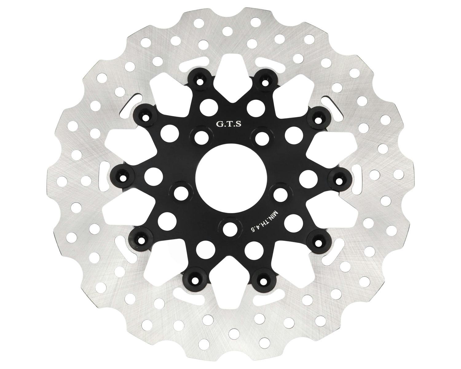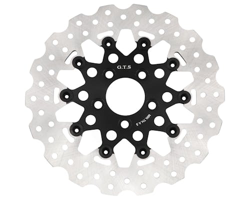 GTSのフローティングディスクローターです。 アウターローターがウェーブカットされている為、 見た目も制動力もアップ! フローティングローターはリジット固定に比べ、 ロータに生じる車軸方向の応力が軽減されるため、熱変形が抑えられる他、 ハブやホイールに伝わる熱を軽減させるなど、メリットが豊富です。 レーザーカット加工で精密に仕上げられ、 軽量化のためインナーとコネクトピンはアルミが使われています。 |