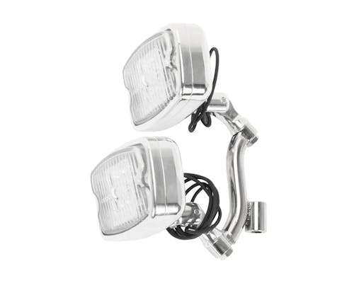ヘッドライトを2連で取り付けられるマウントです。 一般的なスチールよりも、 ステンレスならではの滑らかに研磨された質感も上品な仕上がりです。 |