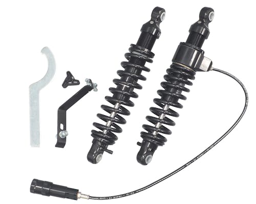 1963年創業、イタリア北部のパドヴァに本社を構える 世界的に有名なサスペンションメーカーであるBitubo。 WME-REMOTEツインショックはレースで実証された快適性、フルアジャストメント、 リモート油圧プリロードアジャスターを備えています。 パッセンジャーの有無や積載量に応じてスプリングプリロードを簡単に調整できます。 |