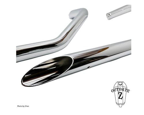 2%ERより、 1-3/4インチ、スラッシュカットのドラッグパイプマフラーが登場です。 本体は45mmφ(1-3/4in) スチール製クロームメッキ仕上げとなっており、 純正フォワード、ミッドコントロール車、両方に取り付け可能。 また、インナーバッフル取り付けも可能で、 ご自身のスタイルに合わせた音量・音質に変更できます。 あらゆるカスタムスタイルに似合う定番中の定番。 ぜひ一度お試しください! |