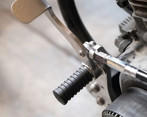 チョッパー乗り必見のPrism Supplyから、マットで無骨なフットクラッチキットが登場。 「これぞエボソフ」ともいえるジョッキーシフト化。 ハンドルからクラッチレバー一式が無くなるため、 "よりシンプル・よりナロー"をお求めの方も必見です。 ピボット部にフットペグアダプターをつければ、Prismのフットペグも装着可能に。 前方、後方の両方の内部レバーストッパー付。 |