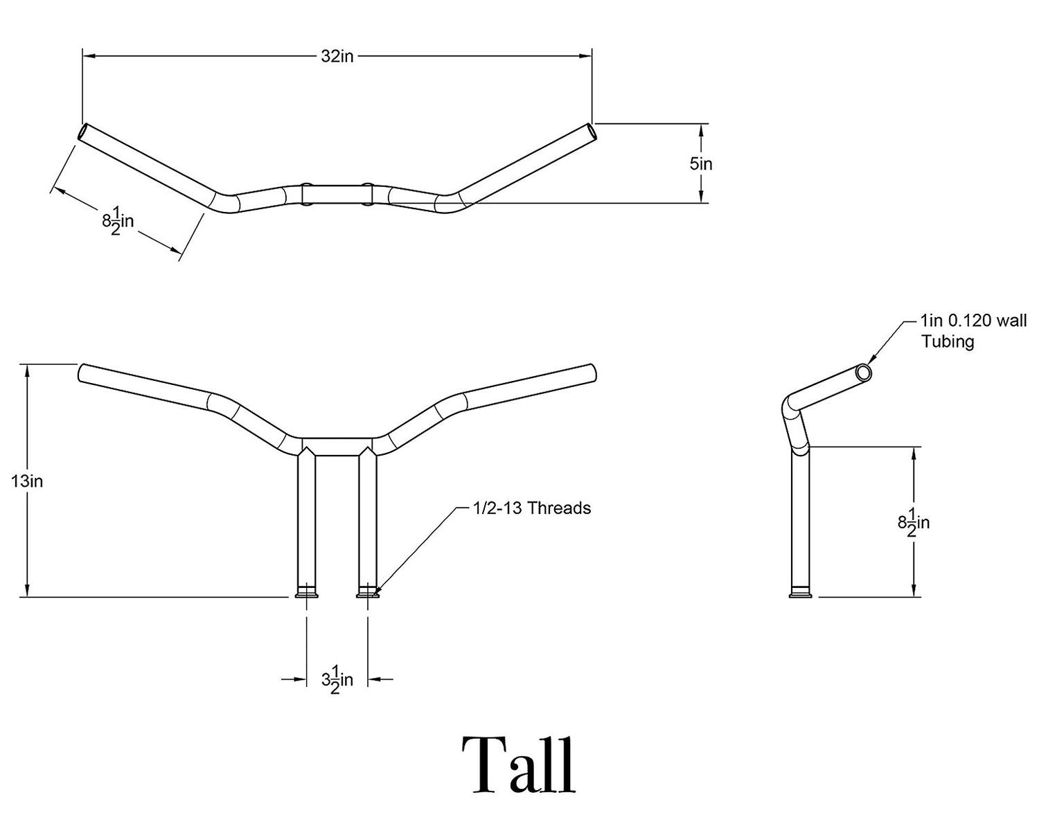 ライザーボルトピッチ:1/2-13 全幅約:752mm 高さ約:338mm プルバック:約127mm エンドライズ- |