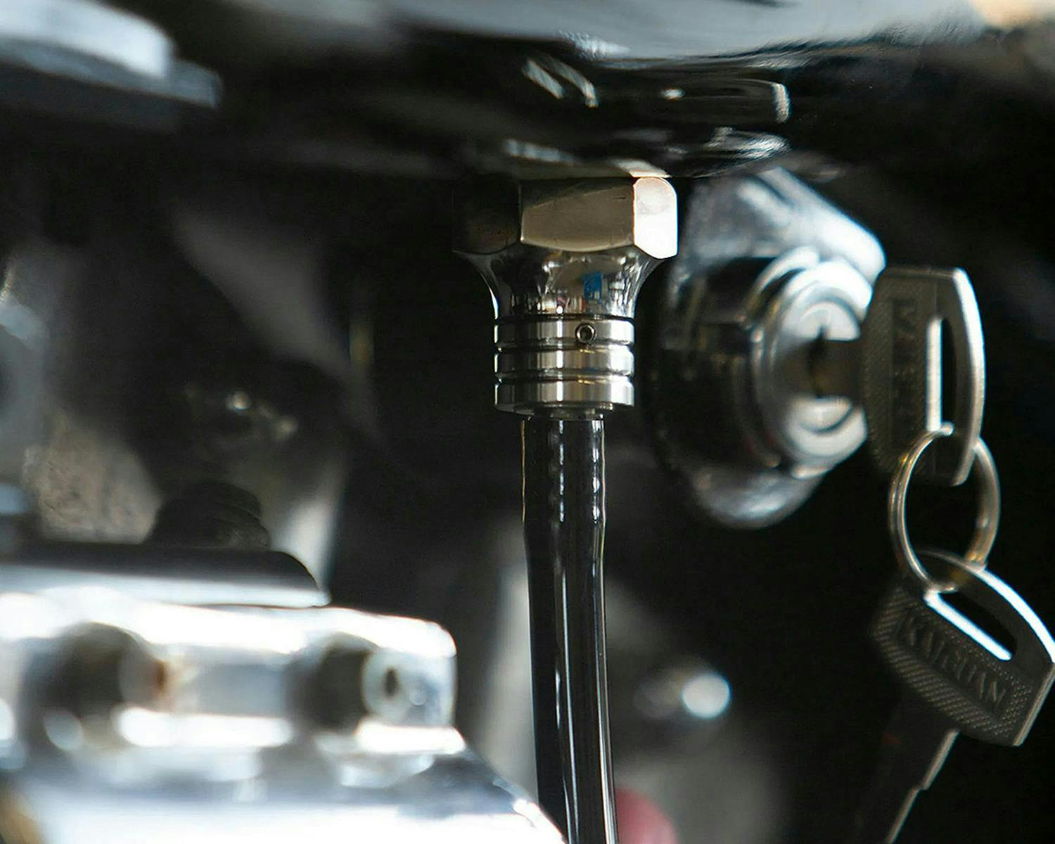 カスタムスタイルのガソリンコックです。 溝が付いた円筒形の部分を回転させ、燃料のオン/オフを切り替えます。 右にひねると閉じ、左にひねると開きます。 【参考動画】 |
