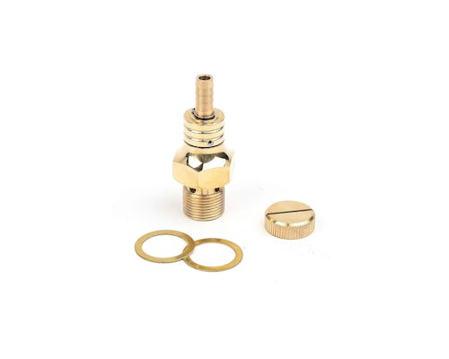 OEMシャットオフバルブを取り除いた際のブロックオフバングも付属。 コック自体もミニマムかつシンプルな見た目で、タンクの外観が非常にきれいになります。 溝が付いた円筒形の部分を回転させ、燃料のオン/オフを切り替えます。 【参考動画】 |